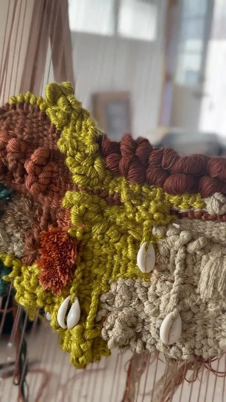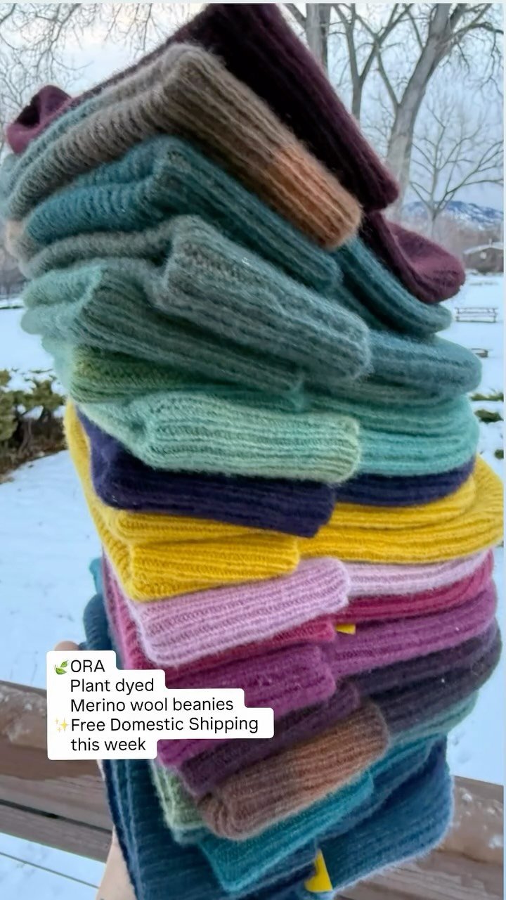 Botanically dyed natural fiber women's clothing and handwoven fiber art